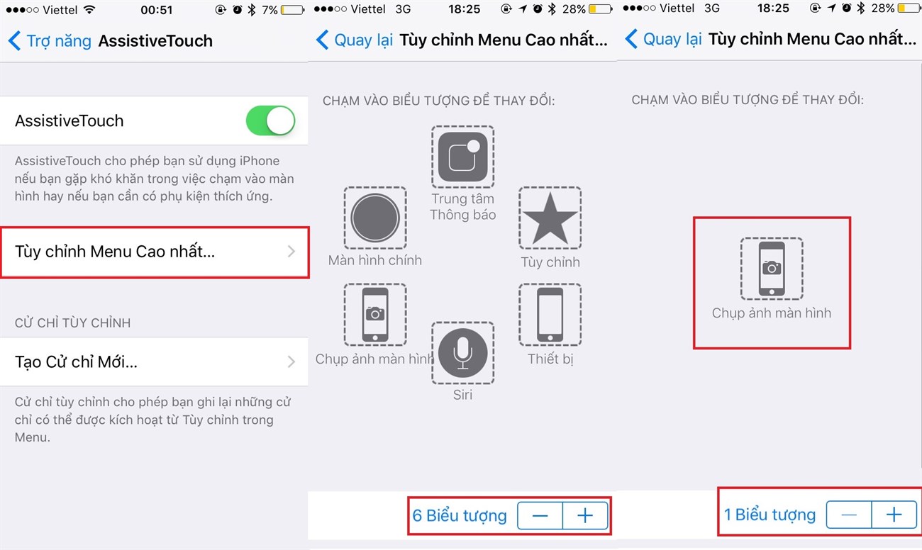 Bước 2: Bạn nên chọn tùy chọn Tùy chỉnh Menu Cao nhất. Tại đây hãy giảm số biểu tượng xuống thành 1 biểu tượng.