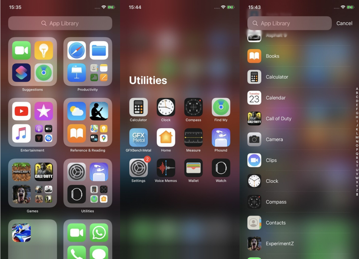 Thư viện ứng dụng là một yếu tố mới lạ khác làm say lòng màn hình chính của iOS. Nếu trước đây màn hình của bạn chứa số lượng lớn ứng dụng với các biểu tượng sắp xếp lộn xộn thì hiện nay, thư viện ứng dụng sẽ giúp bạn phân loại và dọn dẹp gọn gàng các ứng dụng này. Việc nhấn vào tiện ích tìm kiếm trên cùng còn giúp bạn sắp xếp các ứng dụng theo thứ tự bảng chữ cái, giúp việc tìm kiếm dễ dàng hơn.