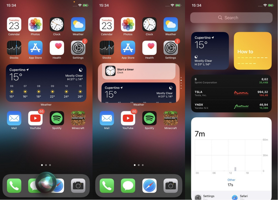 Apple đã thiết kế lại các widget, tạo nên sự thay đổi lớn về màn hình. Với iOS 14, người dùng có thể tự do thay đổi vị trí và kích thước các widget, không bị giới hạn như các phiên bản trước khi widget chỉ được để ở phía bên trái màn hình. Bạn hoàn toàn có thể chuyển các biểu tượng ứng dụng sang các widget mới nếu muốn. Điều đáng nói ở đây là các widget đã được thiết kế lại sao cho thật đồng nhất và tuân thủ chặt chẽ tính thẩm mỹ của các thành phần giao diện xung quanh. Điều này khiến các widget trông rất tự nhiên và không bị lạc lõng.