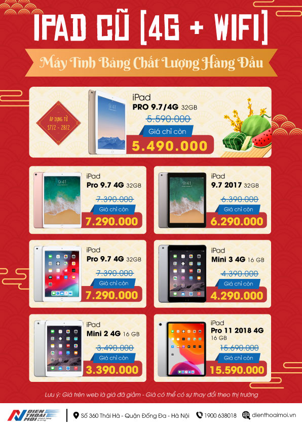 iPad cũ (4G + Wifi) - Giá rẻ nhất - Cam kết nguyên zin - Máy tính bảng chất lượng hàng đầu